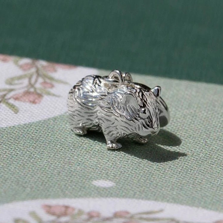 Sterling Silver Ball Bead Ring With Guinea Pig Charm