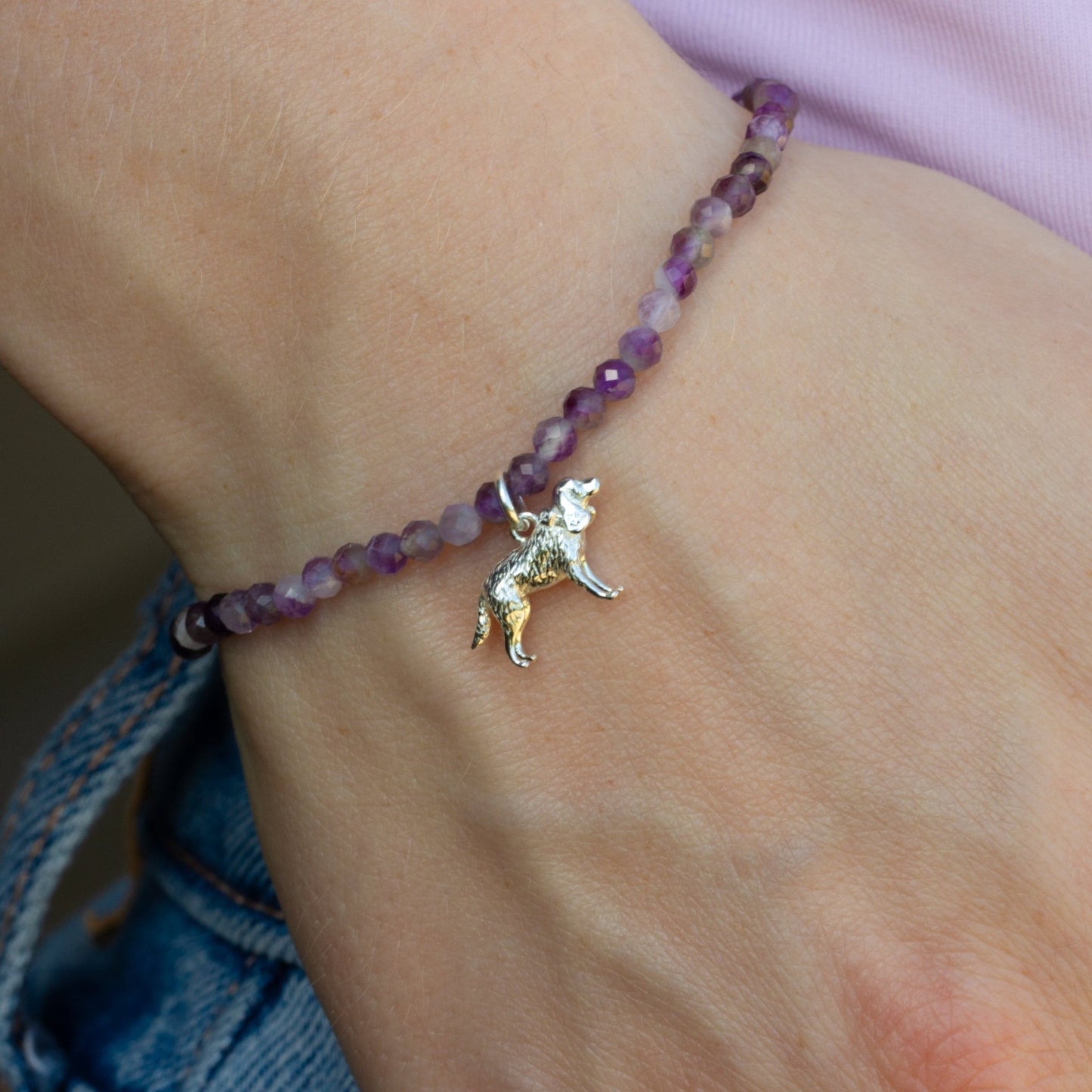 Celebrate your beloved Cocker Spaniel with this personalised Cocker Spaniel bracelet made with your choice of semi precious stones. Whether it’s a thoughtful birthday gift for a dog mum or a heartfelt keepsake for a pet parent, this bracelet is a beautiful way to honour the special bond you share. Choose from a Black Onyx, Rose Quartz, Red Aventurine, Amethyst, Opal or Turquoise bracelet.
