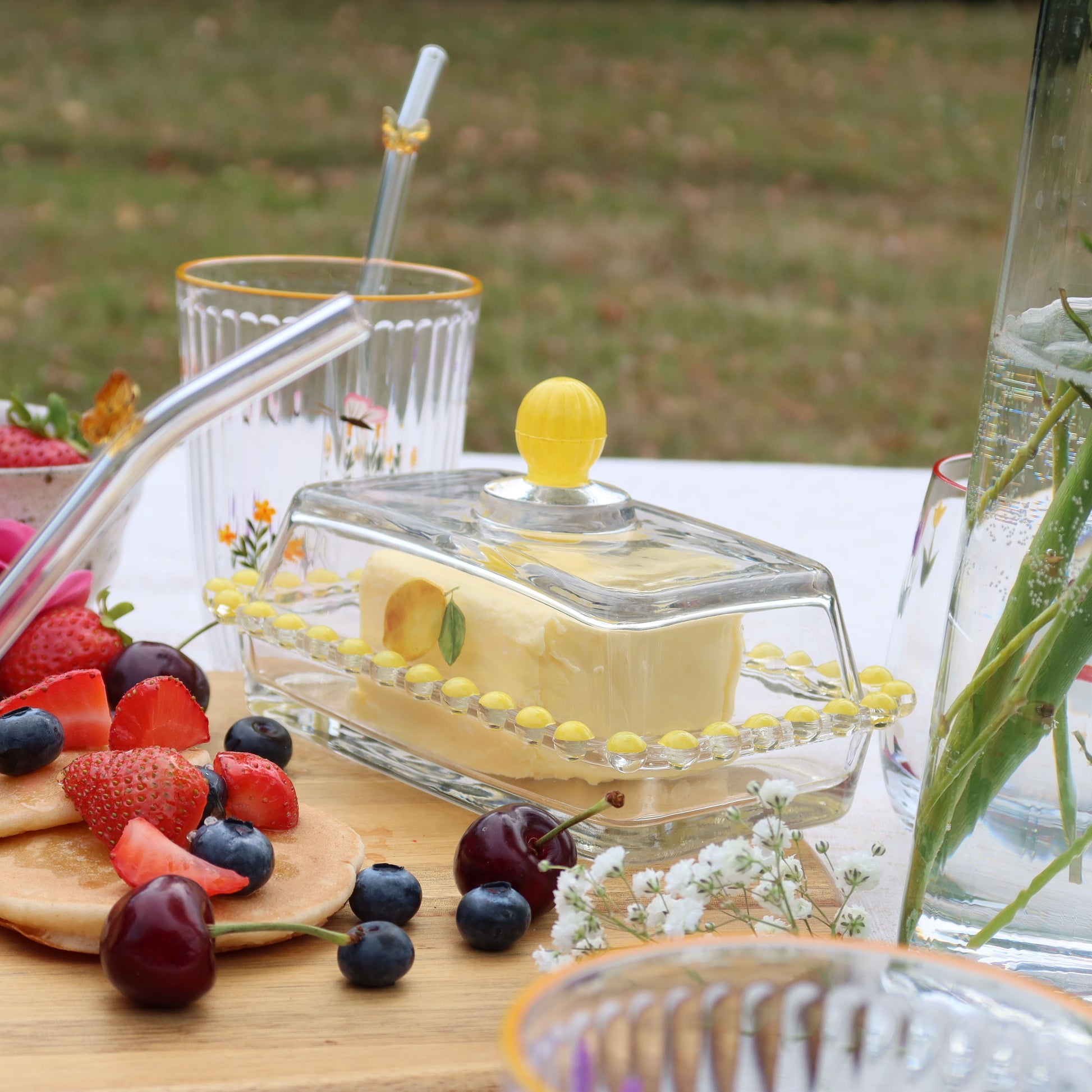 Delicate Butterfly Detail – Each straw includes a solid glass butterfly in a vibrant yellow colour.