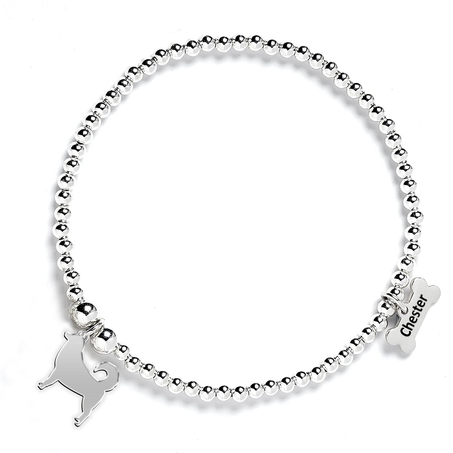 Alaskan Malamute Silhouette Silver Ball Bracelet - Personalised