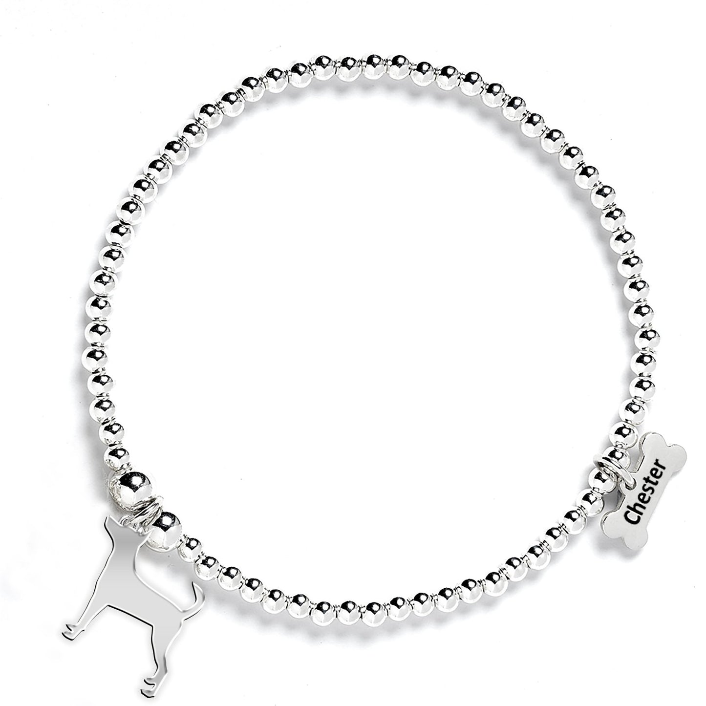 English Toy Terrier Silhouette Silver Ball Bead Bracelet - Personalised