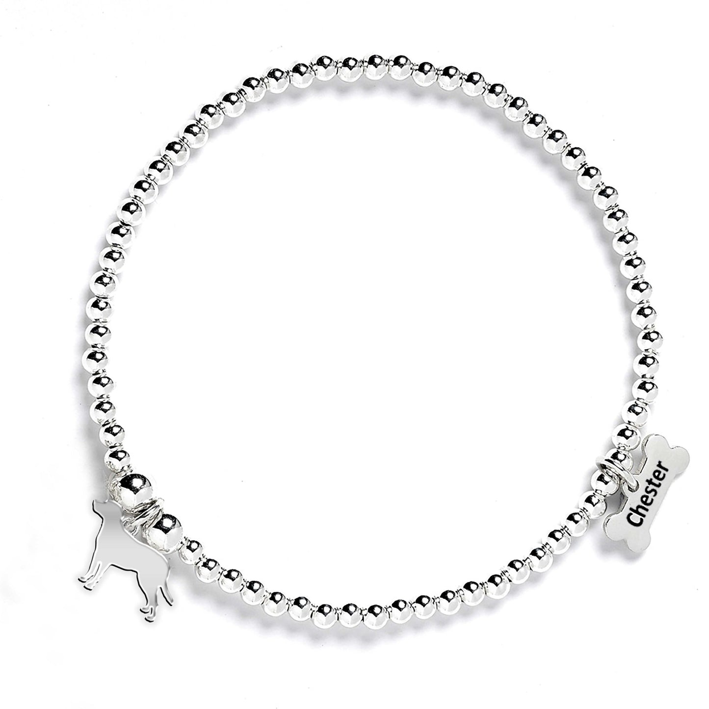 Entlebucher Mountain Dog Silhouette Silver Ball Bead Bracelet - Personalised
