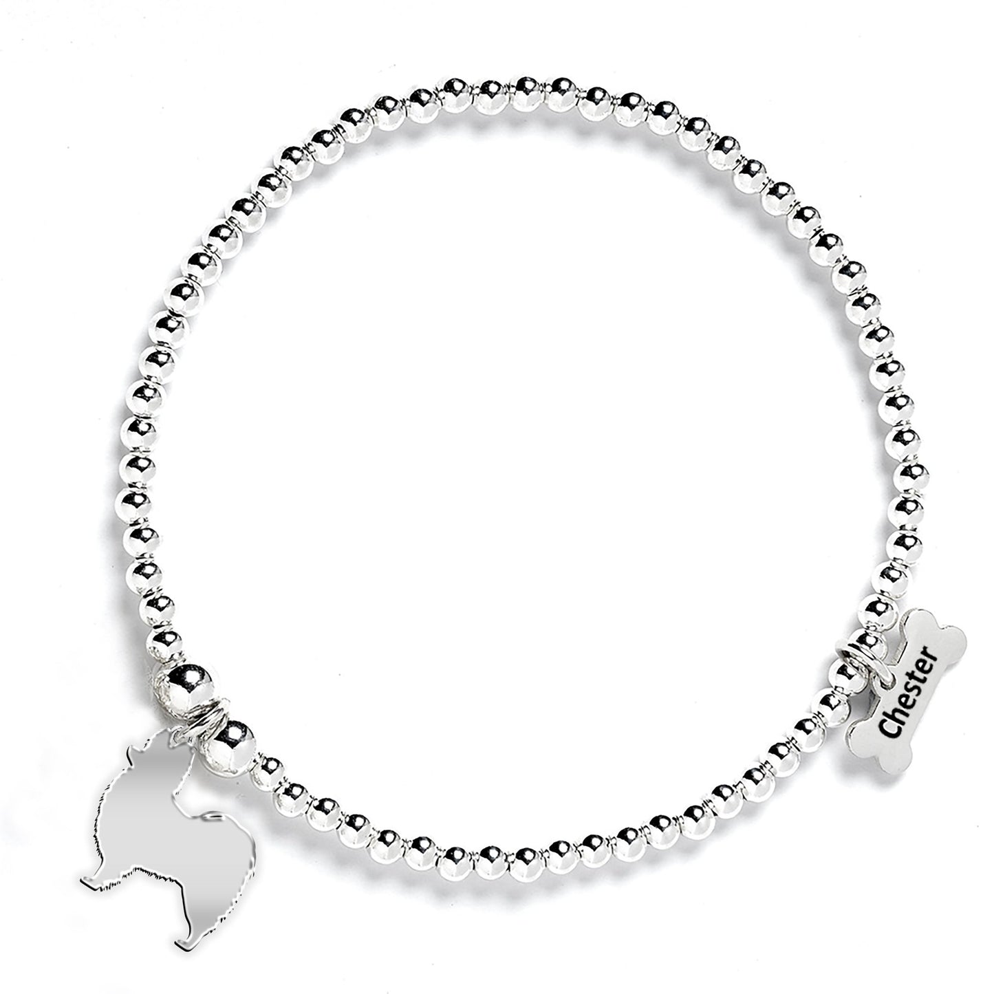 Papillon Silhouette Silver Ball Bead Bracelet - Personalised