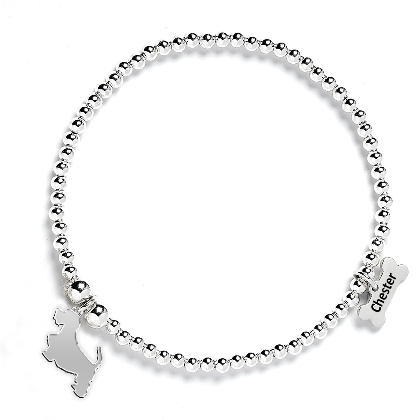 Sealyham Terrier Silhouette Silver Ball Bead Bracelet - Personalised