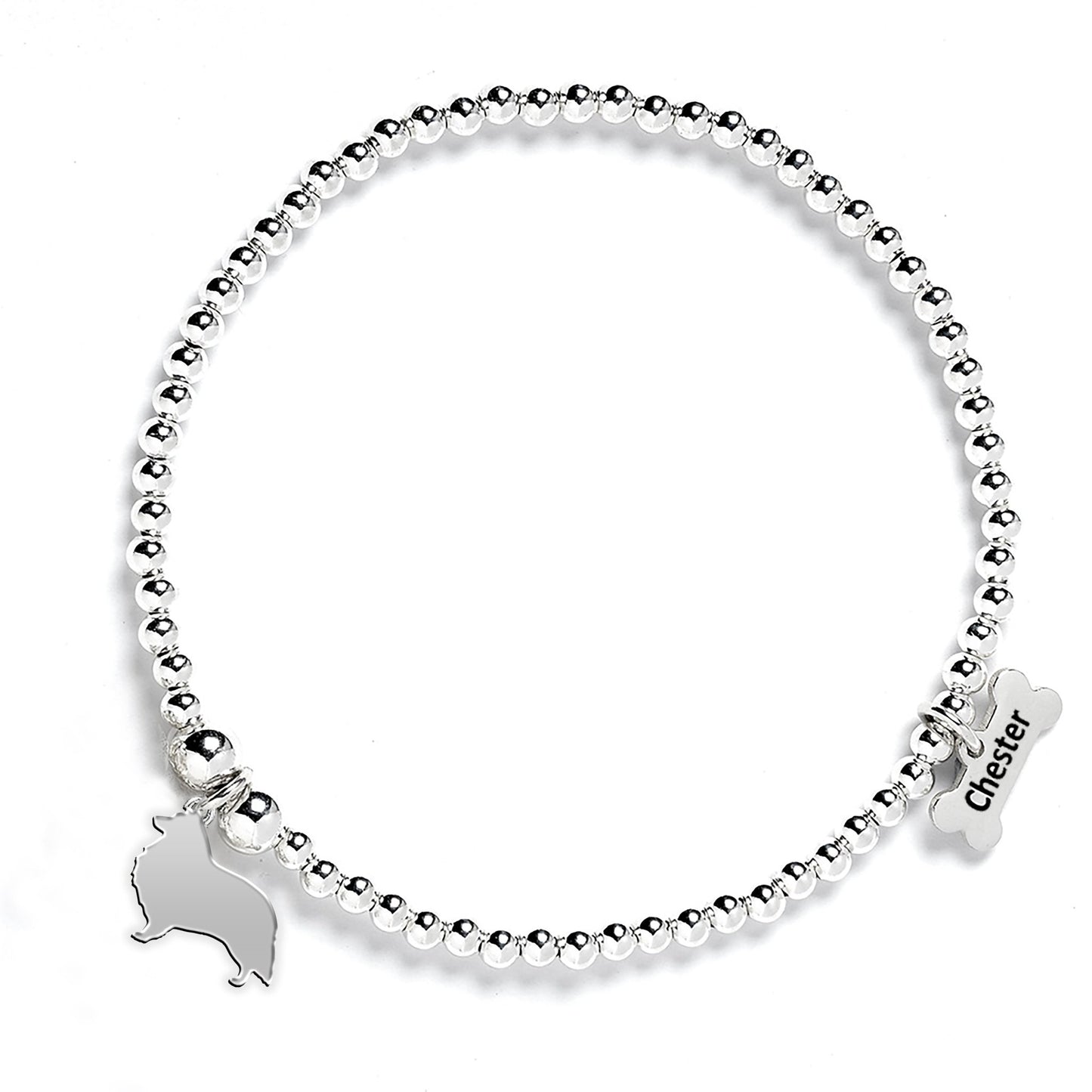 Shetland Sheepdog Silhouette Silver Ball Bead Bracelet - Personalised