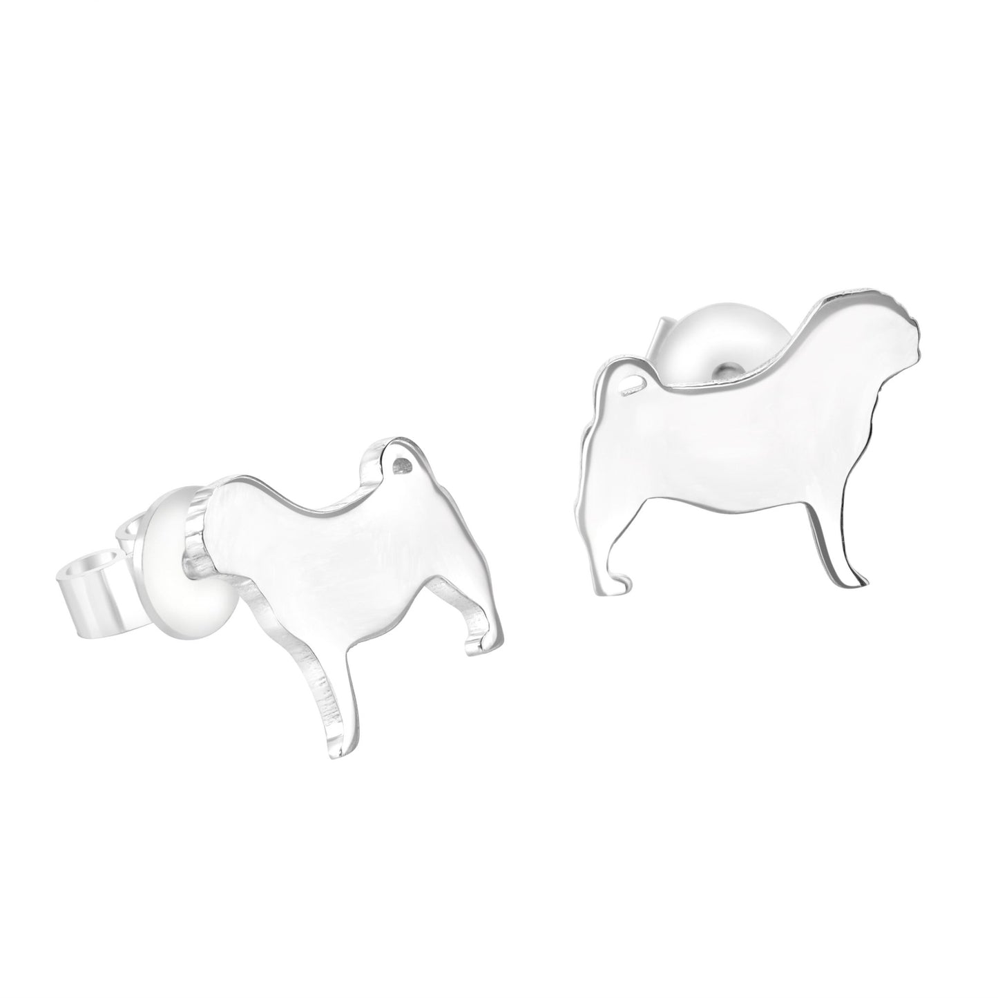 Celebrate your love for Pugs with our Pug stud earrings, a beautifully crafted keepsake designed for dog lovers. These high-quality 925 sterling silver studs feature the distinctive silhouette of these Playful and mischievous dogs and are guaranteed to brighten your day. A perfect gift for Pug owners, dog lovers, or anyone who appreciates sterling silver jewellery.