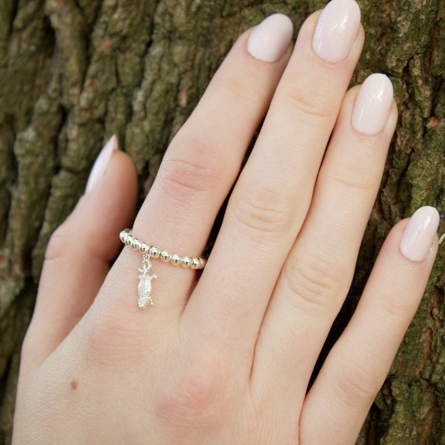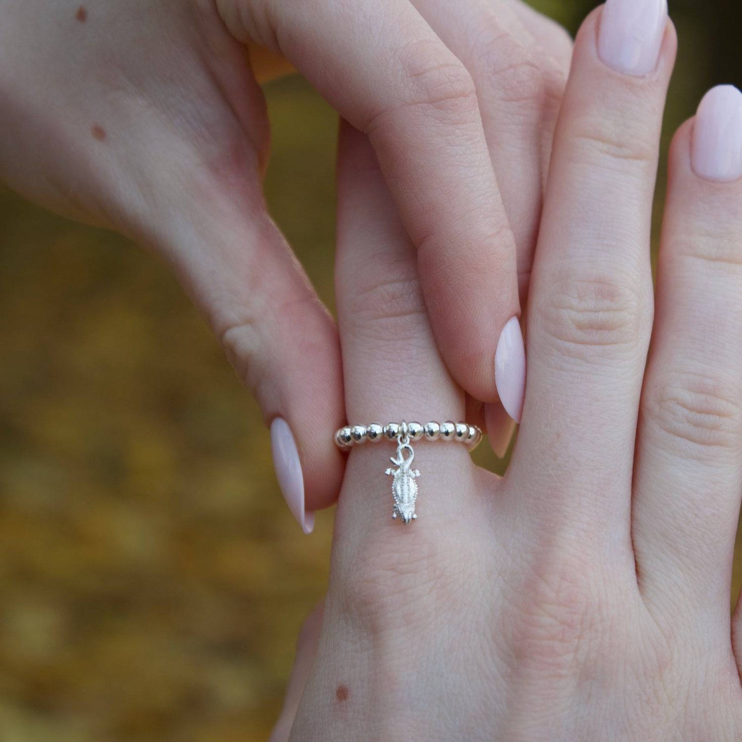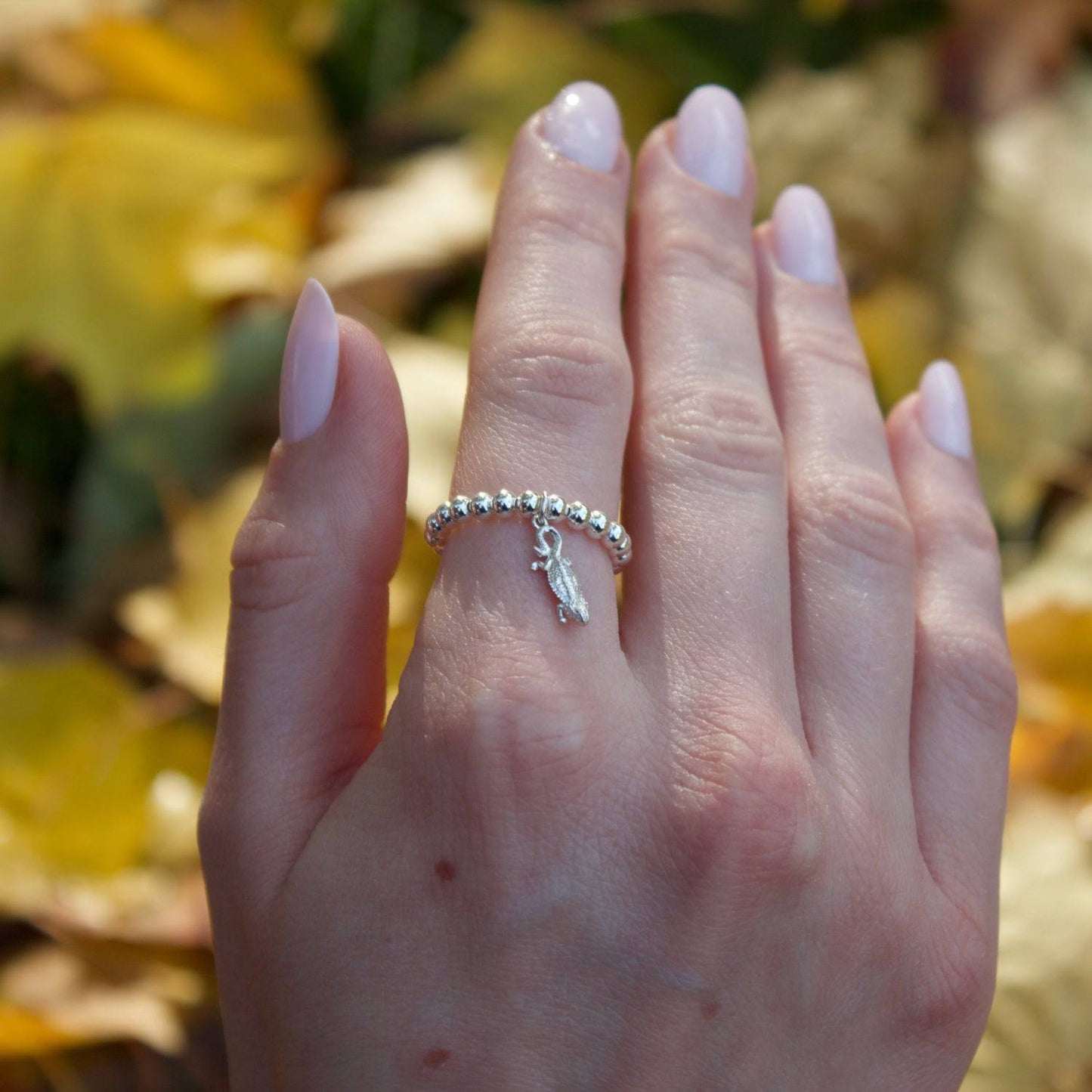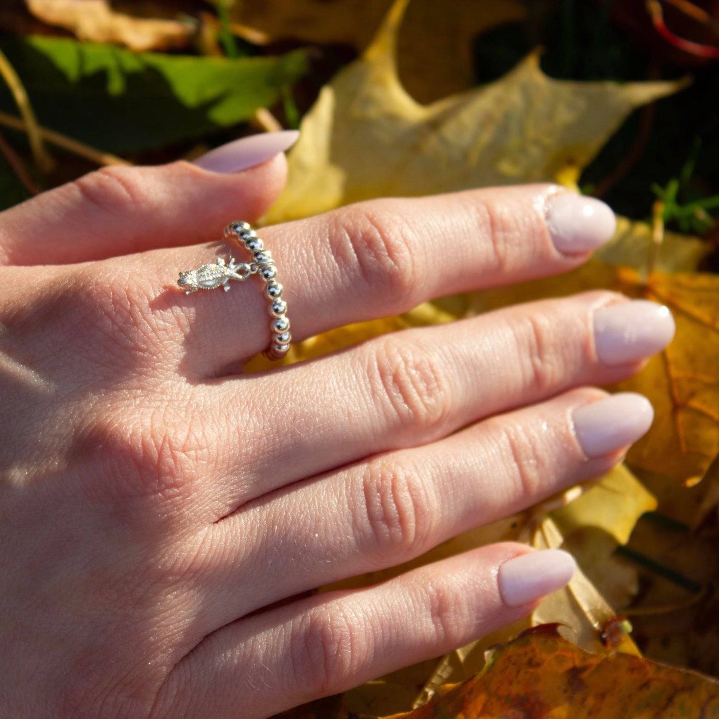 Sterling Silver Ball Bead Ring With Bearded Dragon Charm
