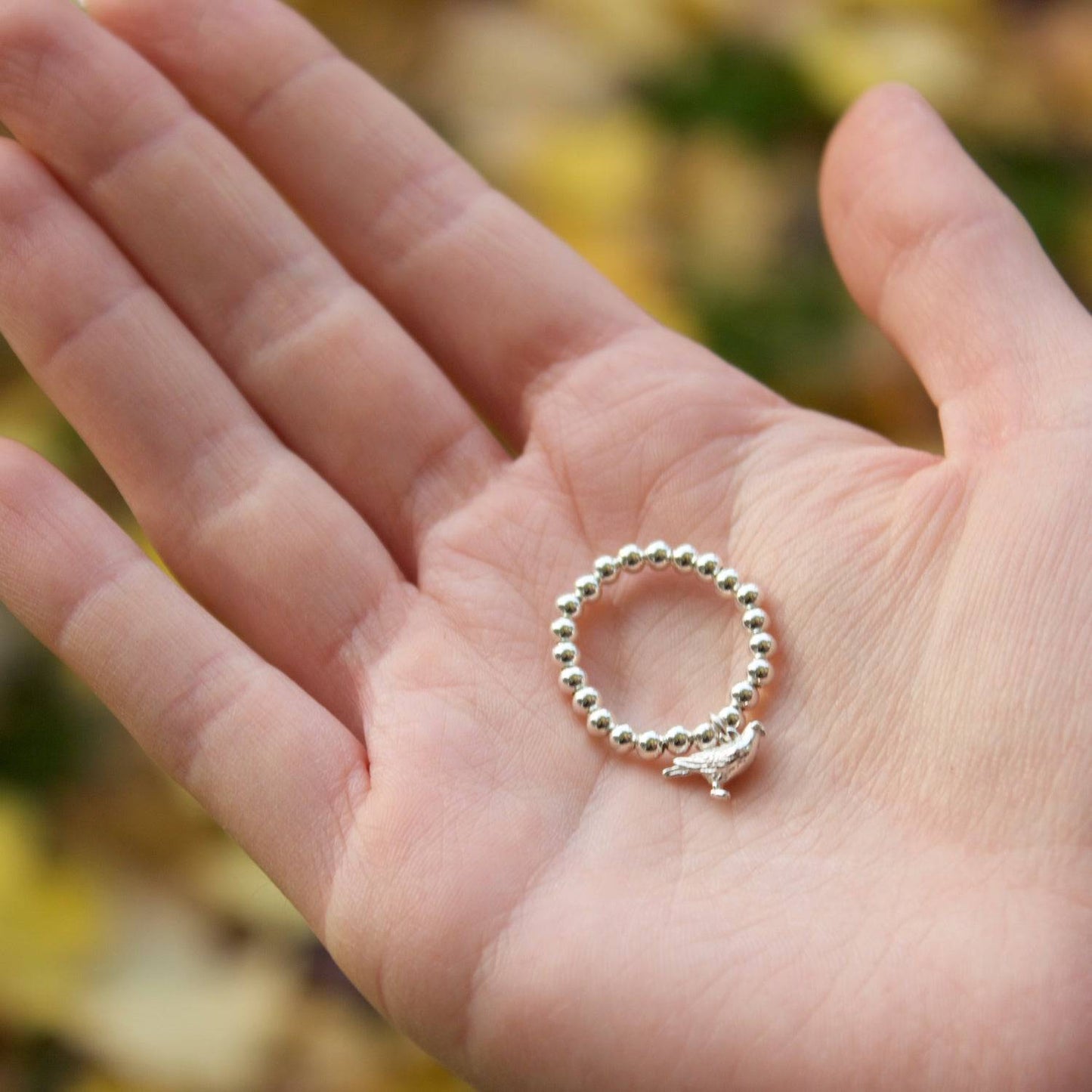 Sterling Silver Ball Bead Ring With Homing Pigeon Charm