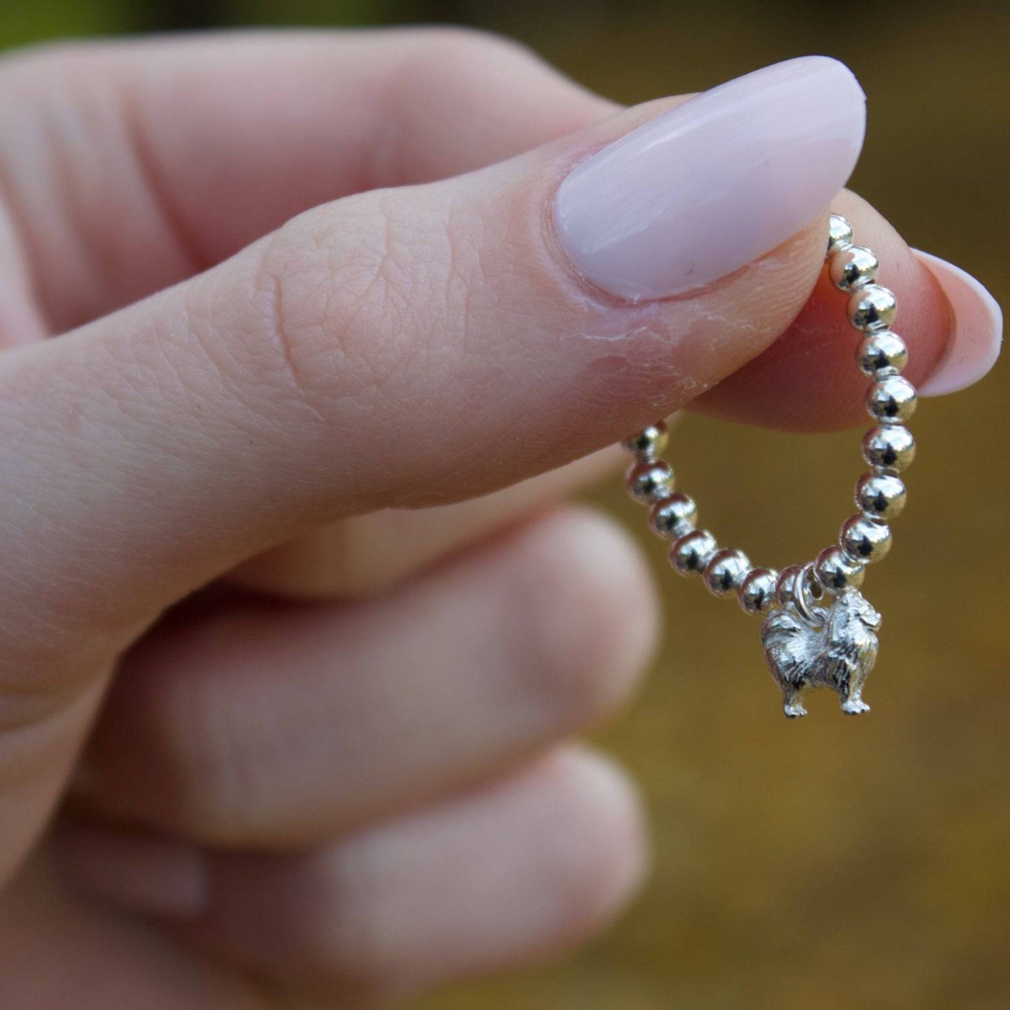 Sterling Silver Ball Bead Ring With Pomeranian Charm
