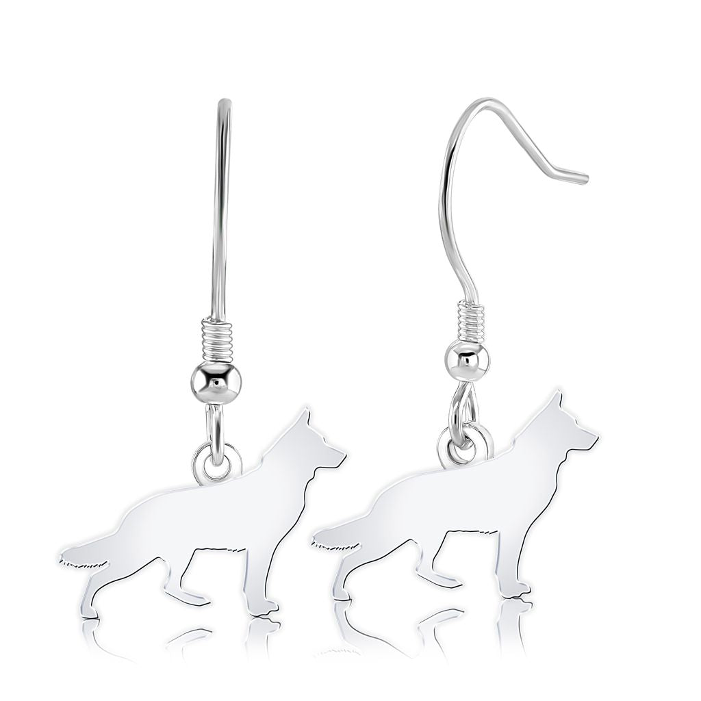 White Swiss Shepherd Dog Silhouette Silver Earrings